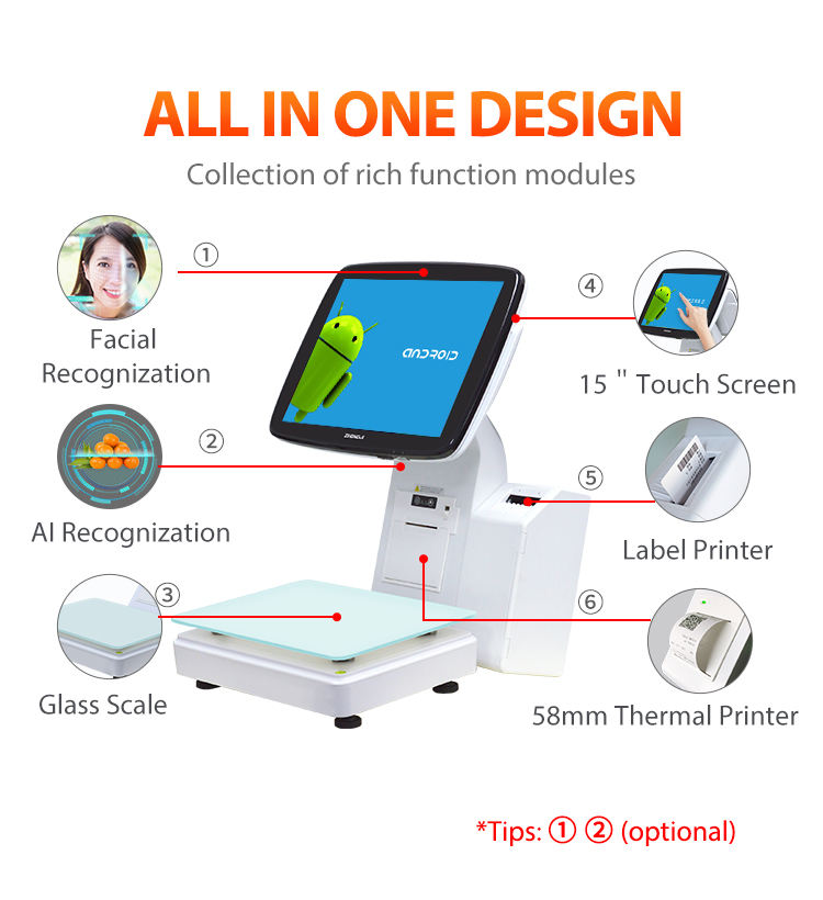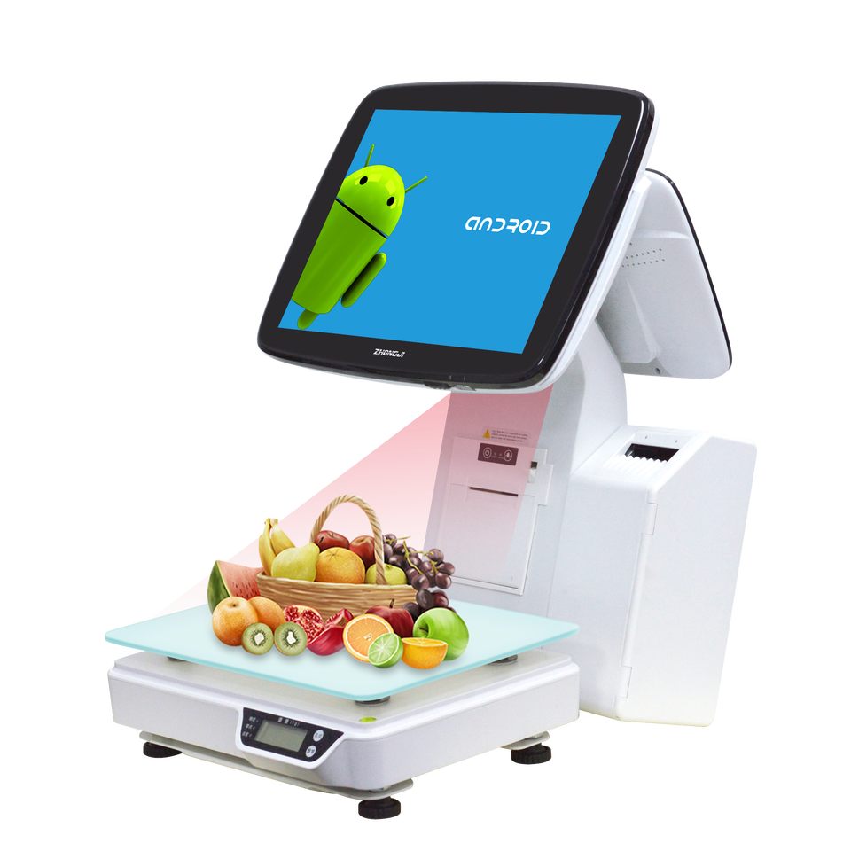 ZHONGJI Imprimante d'étiquettes à reconnaissance automatique à écran large de 15 pouces Caisse enregistreuse POS avec échelle d'étiquette