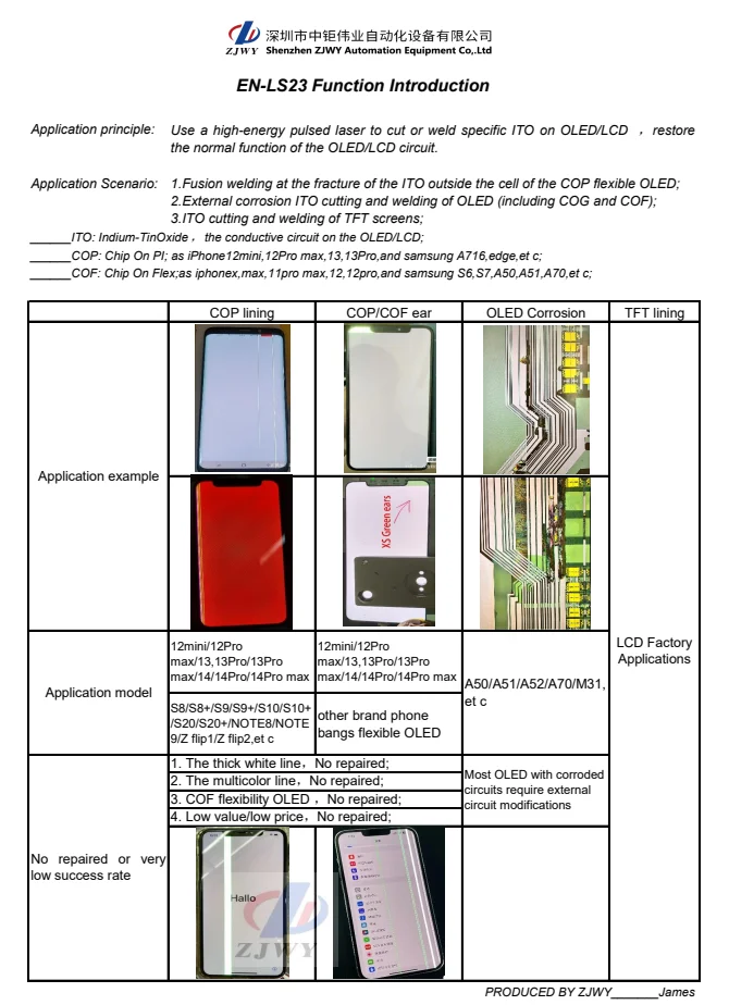 Machine laser ZJWY EN-LS23P pour la réparation des écrans cassés de téléphones mobiles, la découpe de circuits, la réparation des écrans LCD/OLED/LED ITO, la réparation par soudure