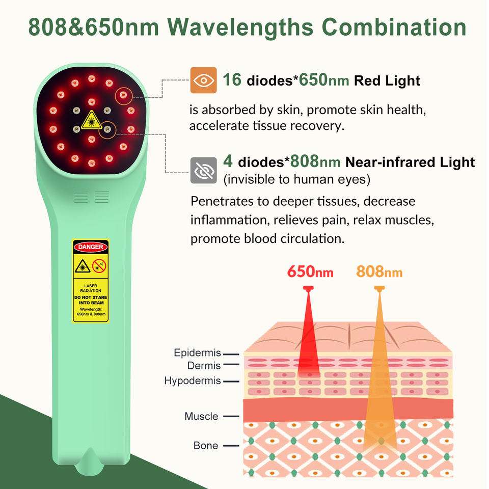 Wavelength:650nm*16diodes*5mW+808nm*4diodes*200mW