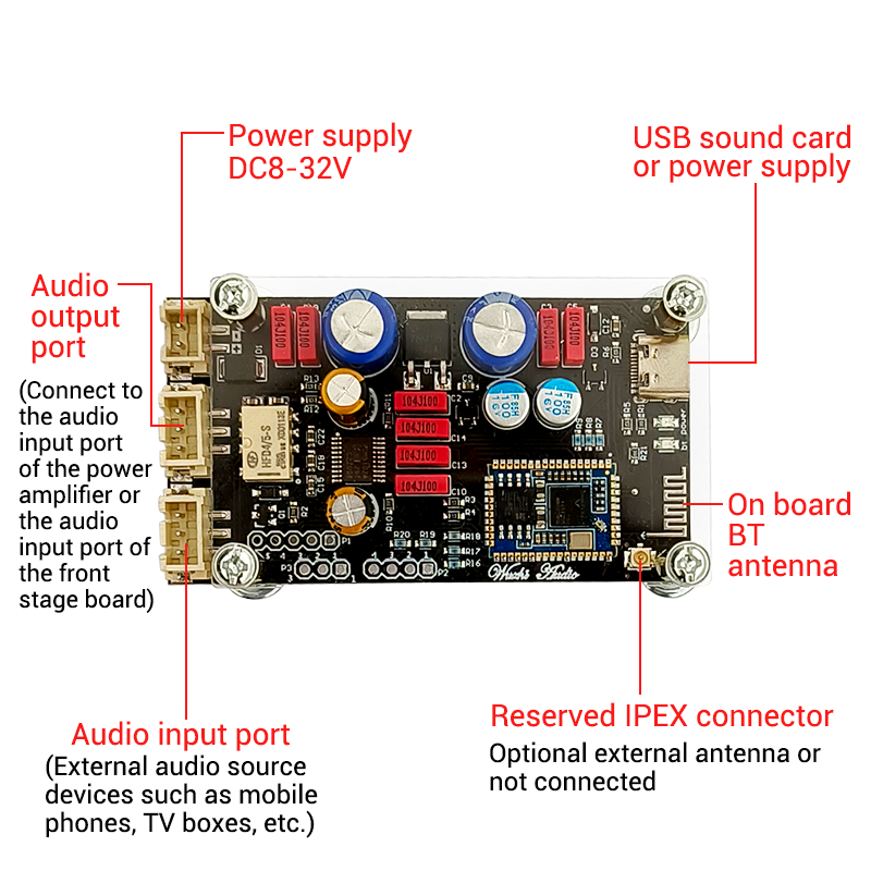 ZK-QCC BT 5.1 Carte de décodage sans perte LDAC Niveau de fièvre Décodeur d'antenne Amplificateur de puissance stéréo numérique Carte son