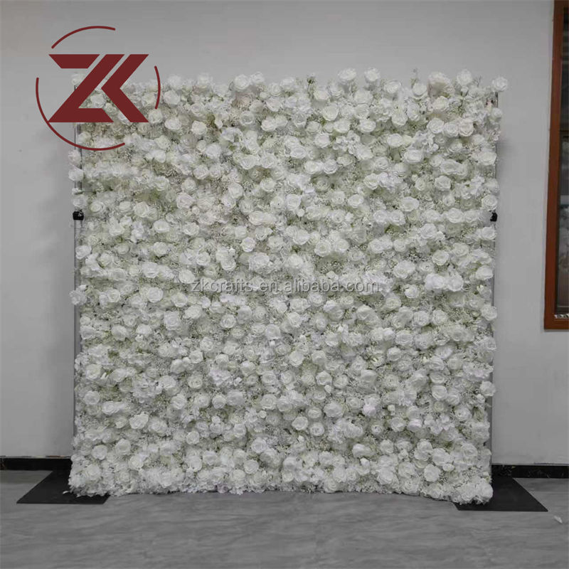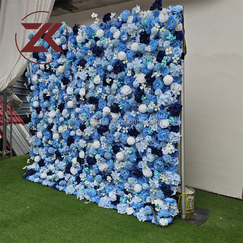 Panneaux muraux de fleurs artificielles en soie ZKAI OEM, luxueux et magnifiques, roses bleues 3D, pour toile de fond de mariage