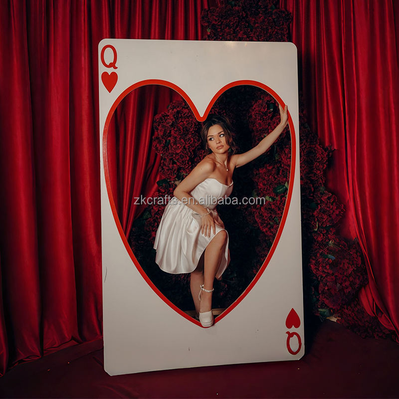 ZKAI Arche de fond photo pour fête, motif Cœurs, As de poker, Cartes à jouer Reine, pour décoration de mariage et de fête