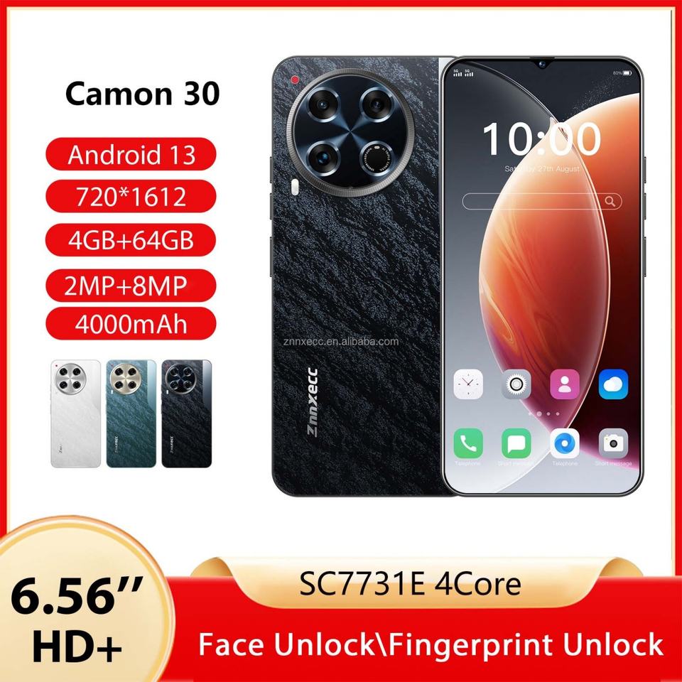 Téléphone Android ZNNXECC Camon 30 double SIM, réseau 3G complet, 4 Go + 64 Go de stockage, écran haute définition en français et en allemand