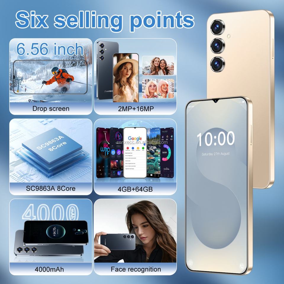 ZNNXECC S252025 Nouveau téléphone Android double SIM, écran haute définition de 6,6 pouces, reconnaissance faciale, processeur octa-core, LTE, vente directe d'usine