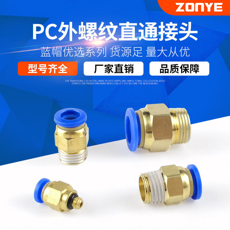 Raccord pneumatique ZONYE PC à filetage externe, connecteur droit en cuivre et plastique, coupleur rapide 6 mm