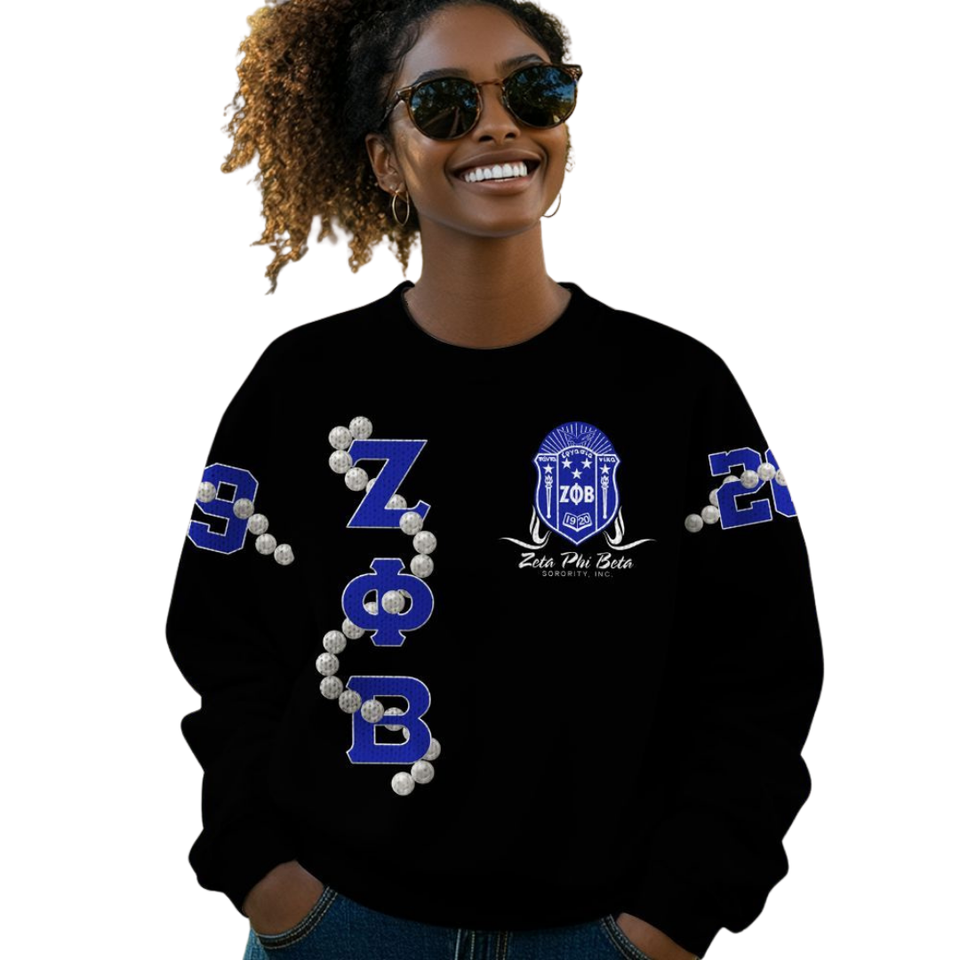 ZPhiB 1920 Blue White Knit Sweater Zeta Phi Beta Sorority Greek Life Chenille Embroidery Divine Nine Letter Sweater