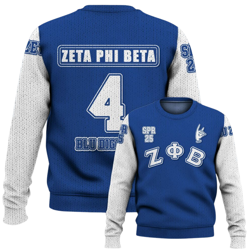 ZPhiB 1920 Zeta Phi Beta Sweater Knit Sorority Greek Life Blue White Chenille Embroidery Divine Nine Premium Wear