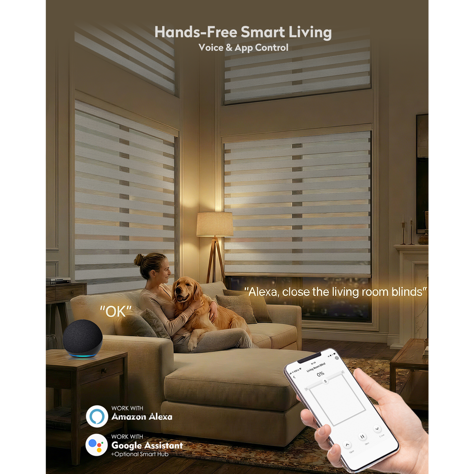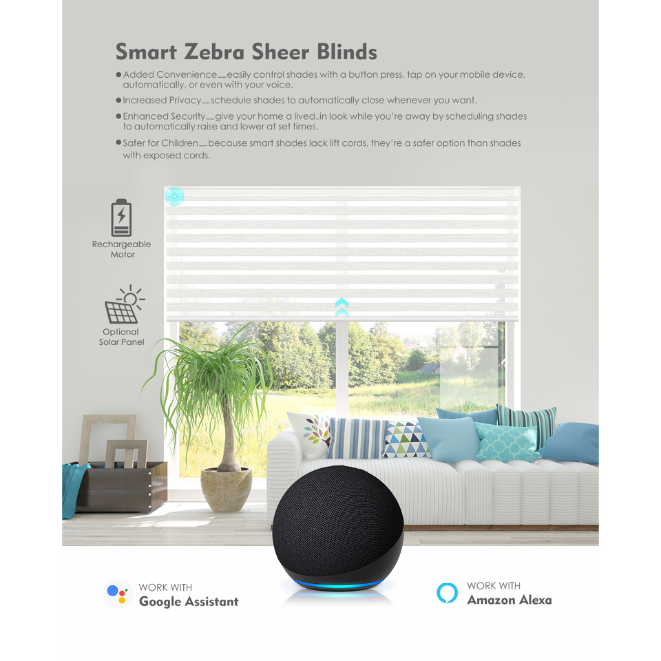Stores zébrés électriques intelligents ZSTARR contrôlés par WiFi et Google Alexa, avec tissu occultant jour/nuit pour la décoration de fenêtre