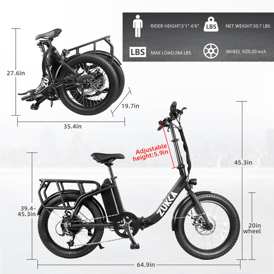 Vélo électrique pliable ZUKKA 48V 500W à propulsion arrière, batterie lithium 15Ah, cadre en alliage d'aluminium, unisexe, grande autonomie, puissant, moteur sans balais