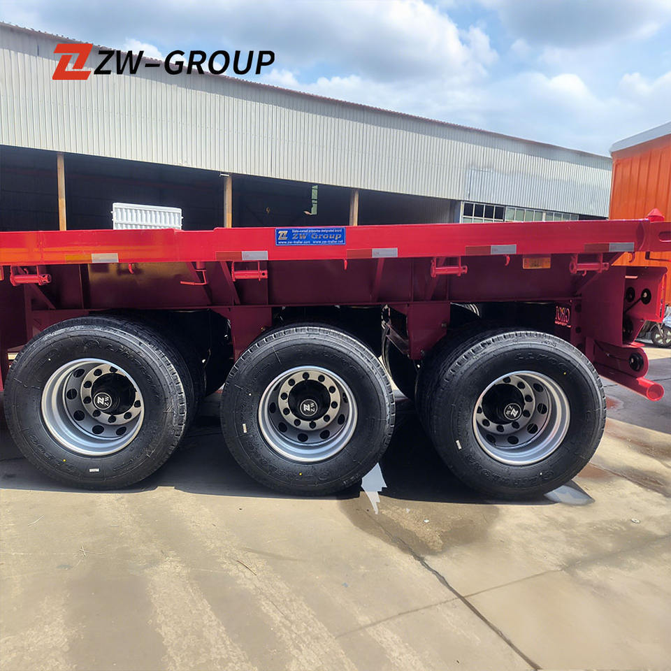 ZW Group Semi-remorque à plateau à 3 essieux Pont plat à trois essieux de 50 tonnes 40 pieds Conteneur d'expédition Matériau en acier Pneu 12R22.5