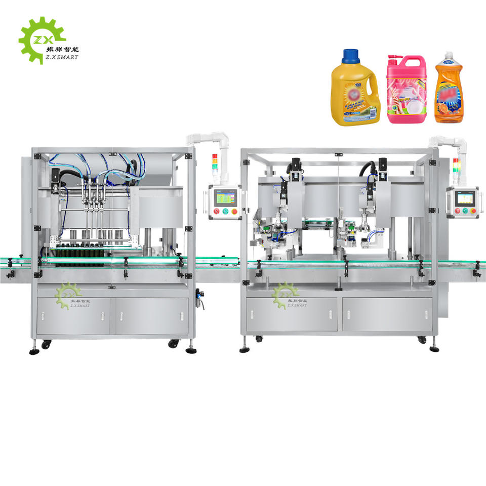 Machine de remplissage et de bouchage automatique ZXSMART à quatre têtes pour liquides (gel, liquide vaisselle, eau de Javel, détergent liquide)
