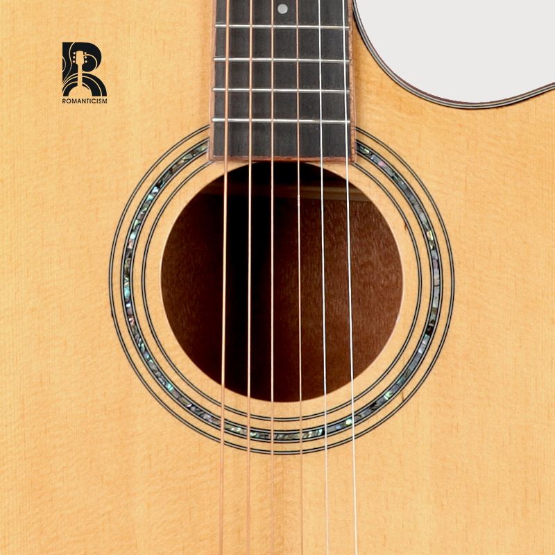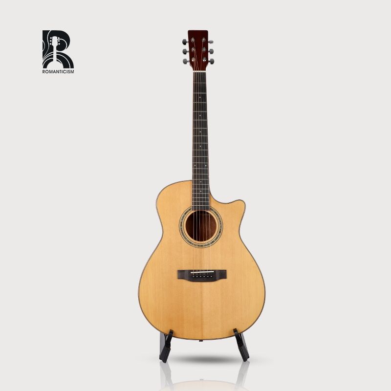 Guitare semi-acoustique ZY-STD02 R fabriquée en Chine, table en épicéa massif, fond et côtés en acajou, finition brillante, design échancré