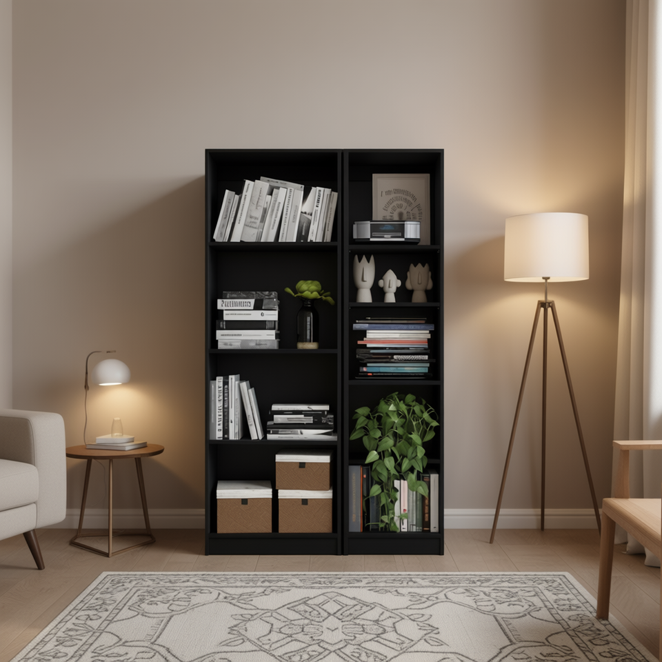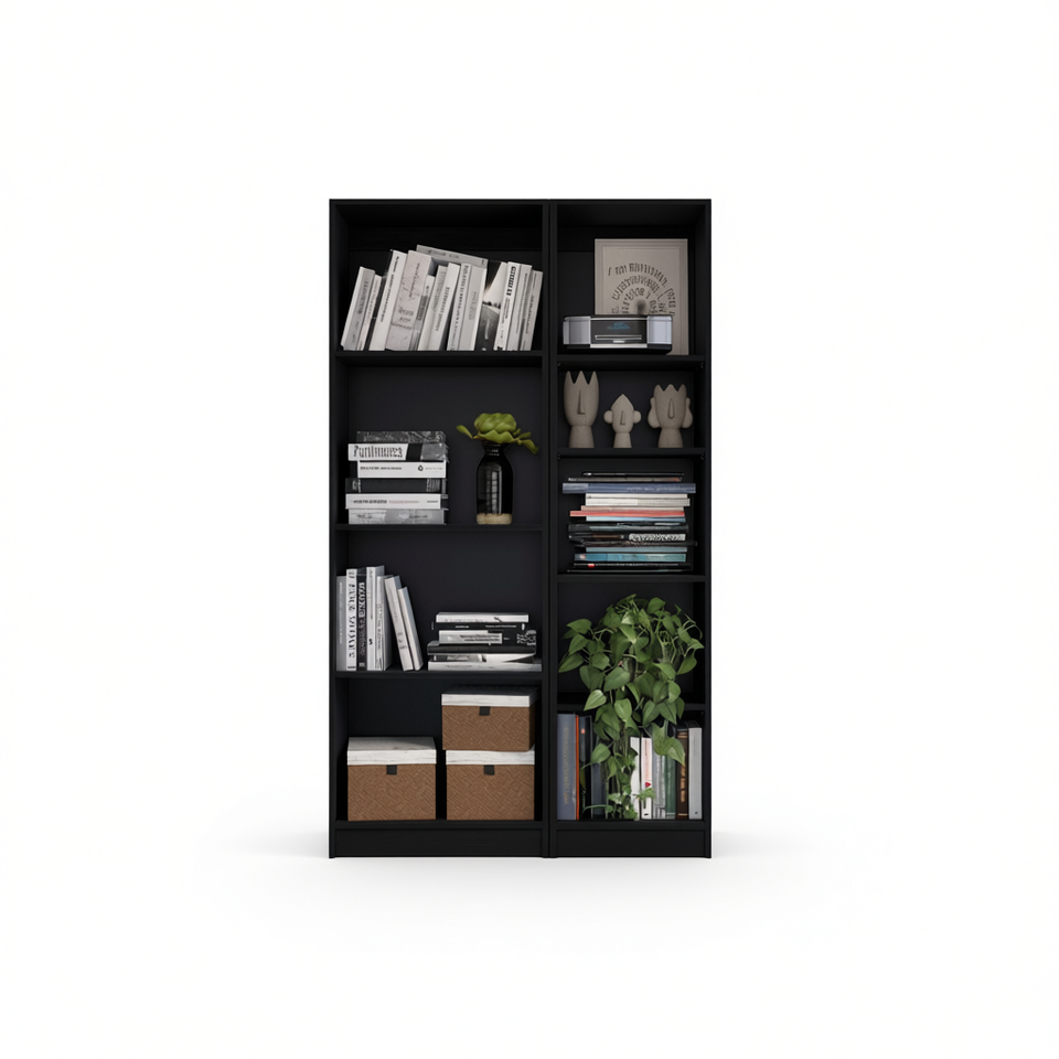 Ensemble de bibliothèques fines Zachary noires, 2 pièces, étagères modernes, meubles de salon, rangement autoportant en MDF pour la maison