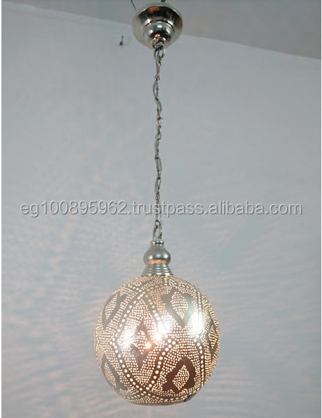 Zahereen Antique Style B230 Tin Mosaic Moroccan Ball Lampshade Steel Hanging Decorative Energy Saving Silver Wall Lamp