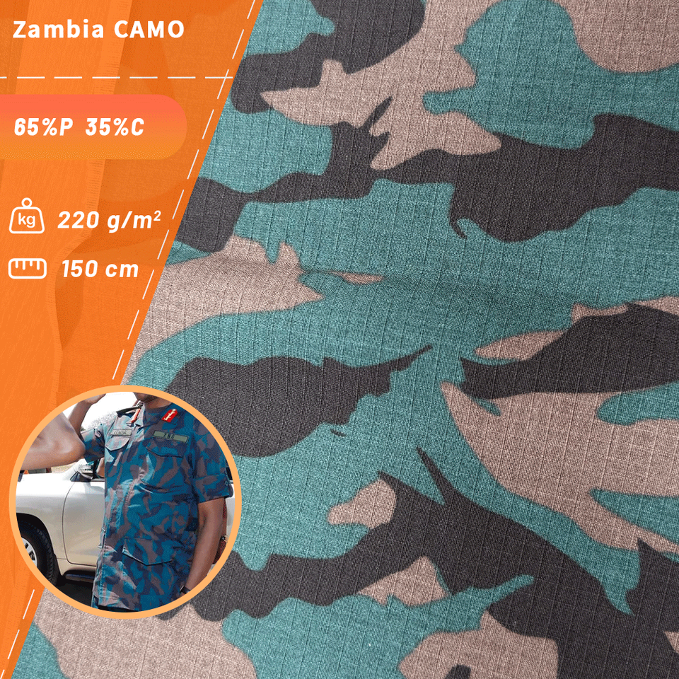 Service national de Zambie Camouflage personnalisé TC6535 Polyester/coton tissu tissé pour utilisation casquette uniformes pour Camouflage