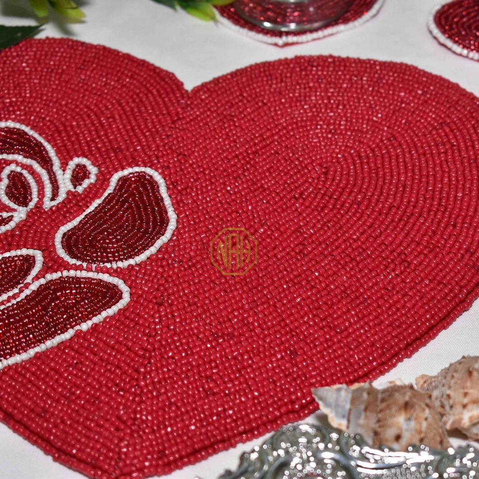 Zarimoon cadeau usine personnalisé romantique fait à la main lin anti-dérapant tapis de Table chargeur coeur perlé brodé décor couleur personnalisée