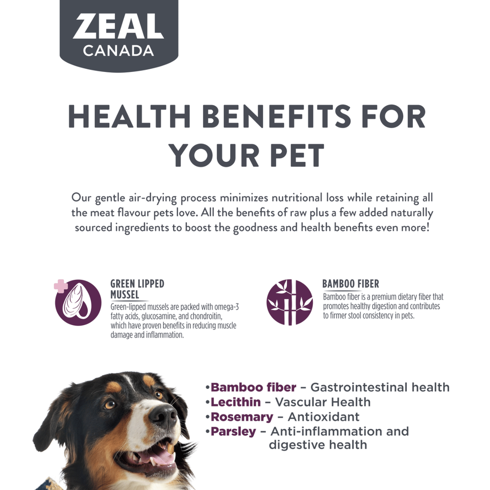 Zeal Canada Air-Dried Dog Food - Whole Prey Meal - Grain Free - For All Life Stages (1lb Bag) Beef