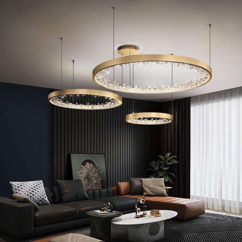 Solutions d'éclairage service:Éclairage et conception de circuit, 3 anneau cercle cristal suspendu pendentif lumière
