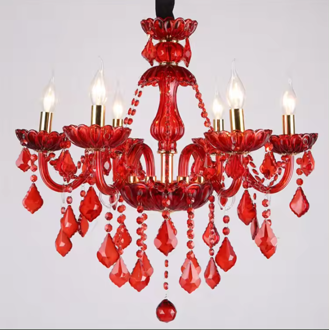 Lighting solutions service:Lighting And Circuitry Design, Red Glass crystal Candle ceiling chandelier