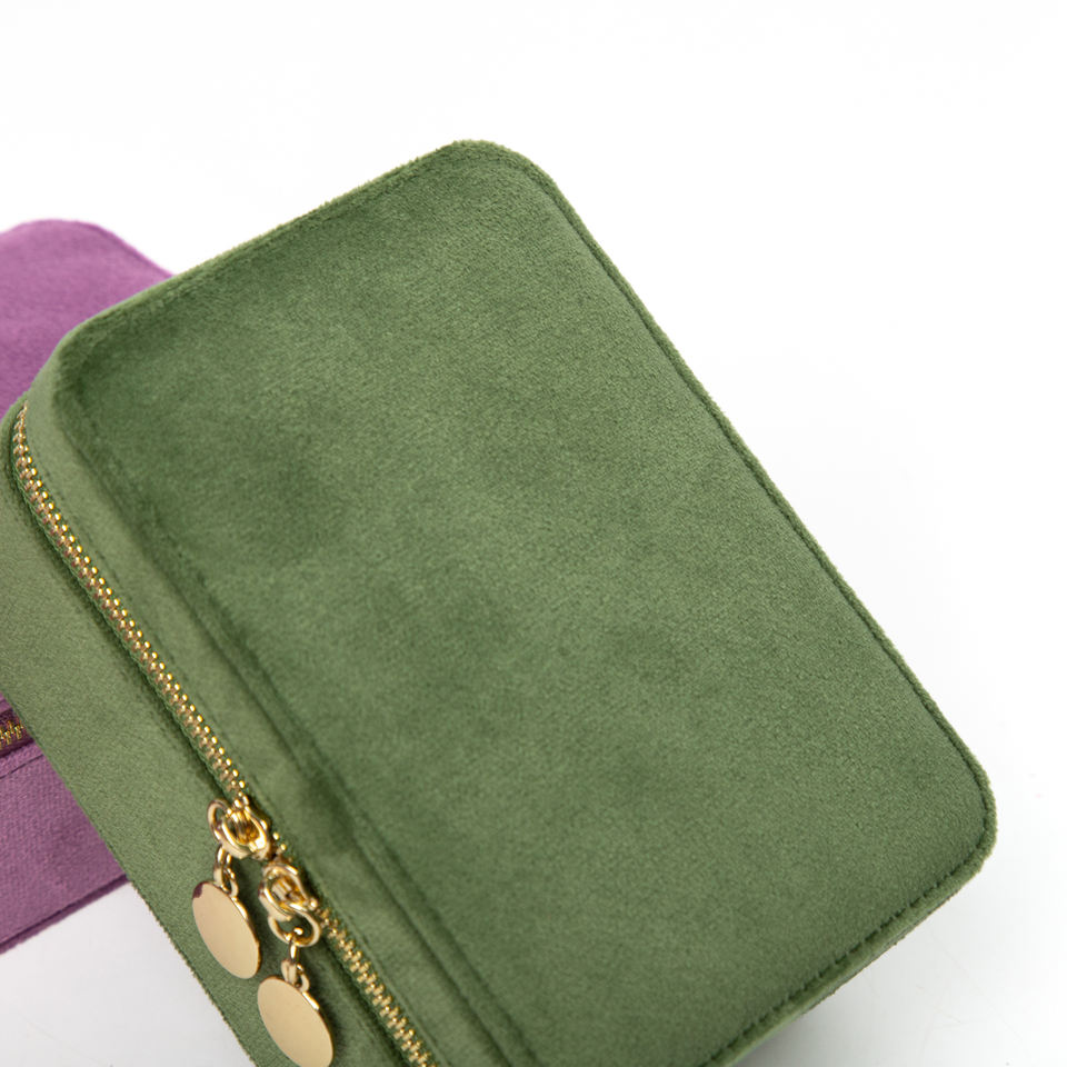 Boîte à bijoux portable en velours Zebo avec fermeture éclair, étui de rangement de voyage pour bagues, boucles d'oreilles, colliers, logo personnalisé disponible