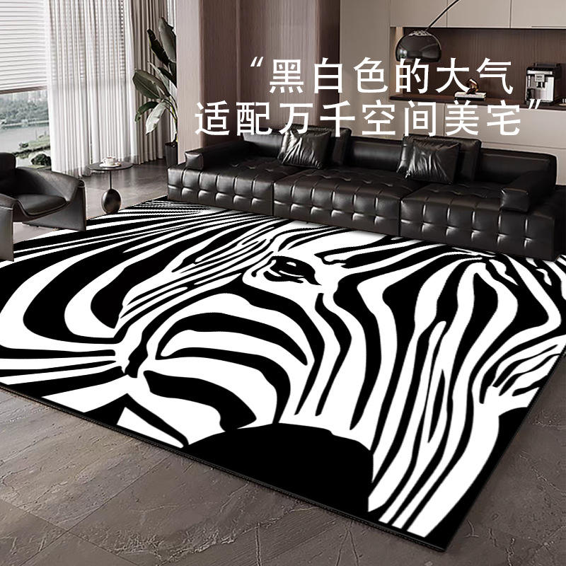 Tapis rectangulaire imprimé zèbre en fibre de polyester, résistant aux taches, lavable, pour salon, chambre à coucher, décoration moderne pour la maison