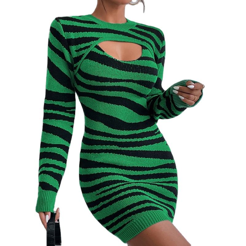 Robe pull sexy et de club à motif zèbre découpé, anti-plis, tricotée sur mesure, longue, en maille OEM pour la saison printanière
