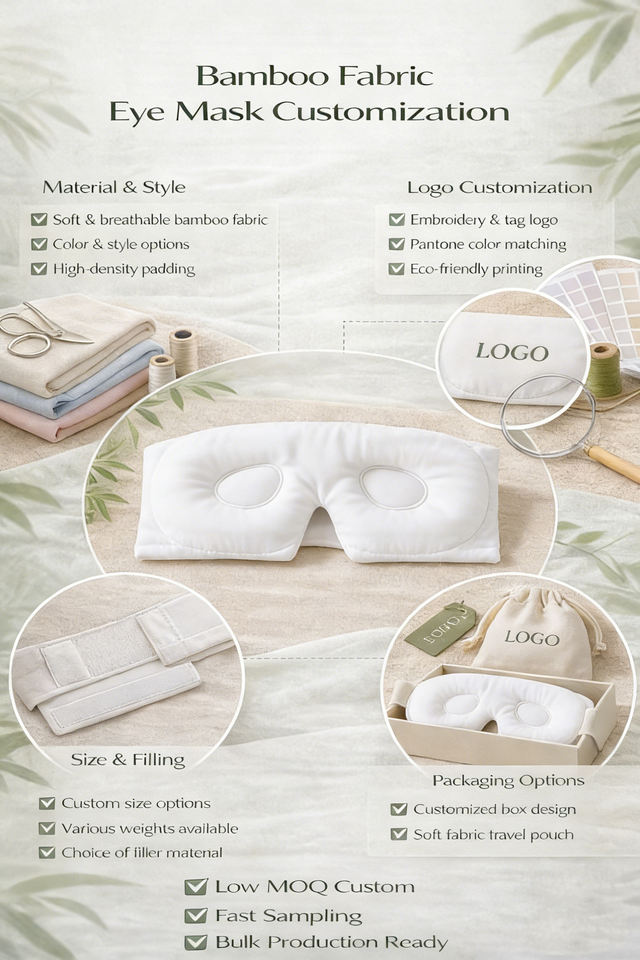 Masque de sommeil 3D sans pression avec sangle Velcro réglable, tissu en bambou doux, OEM disponible