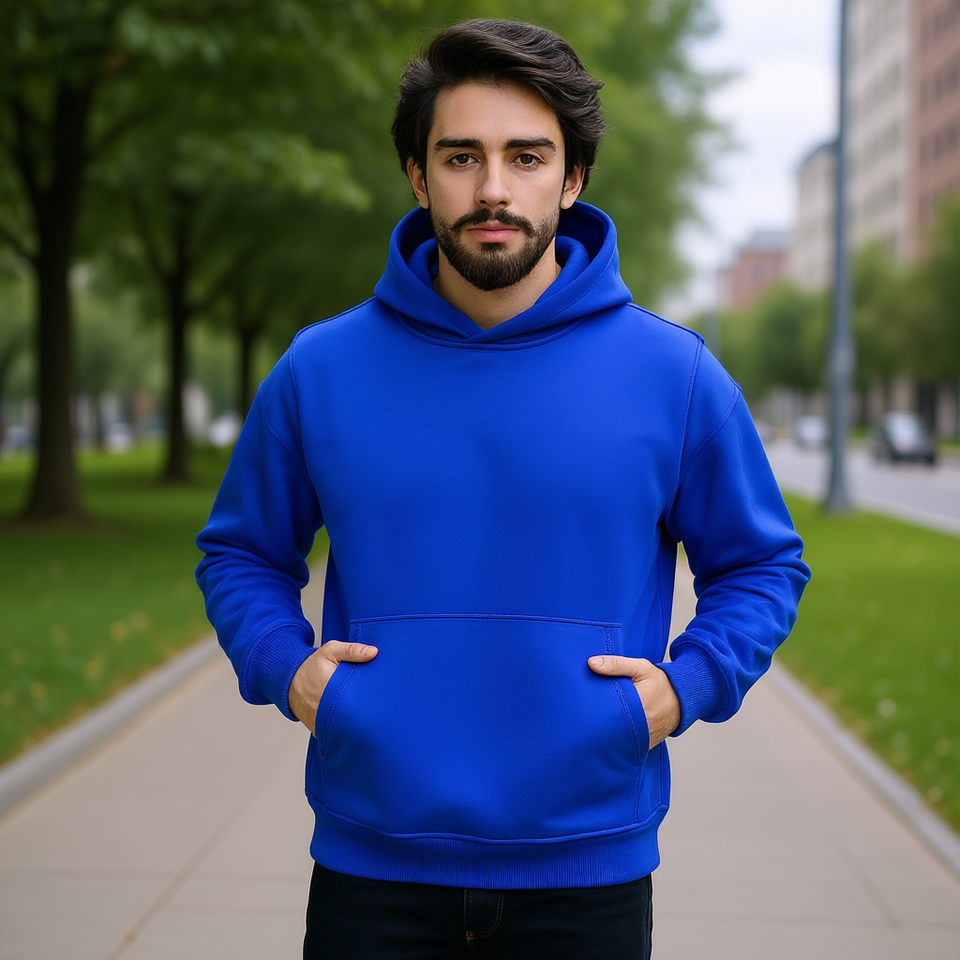 Sweat à capuche personnalisé pour homme, bleu cobalt, en polaire, avec logo imprimé sur le devant, service OEM, coupe classique, vêtements d'hiver