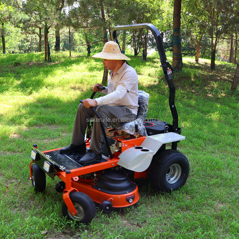 Tondeuse autoportée à rayon de braquage nul, maniabilité rapide, performances économes en carburant et fonctionnement fluide pour une tonte rapide de la pelouse