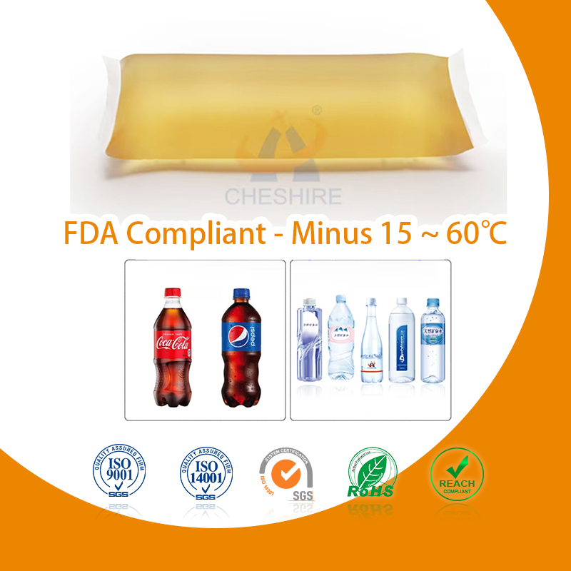 Adhésif thermofusible amovible étanche et solide sans solvant HMA pour contact alimentaire pour bouteille en PET et étiquette de film de boisson-RoHS CERT