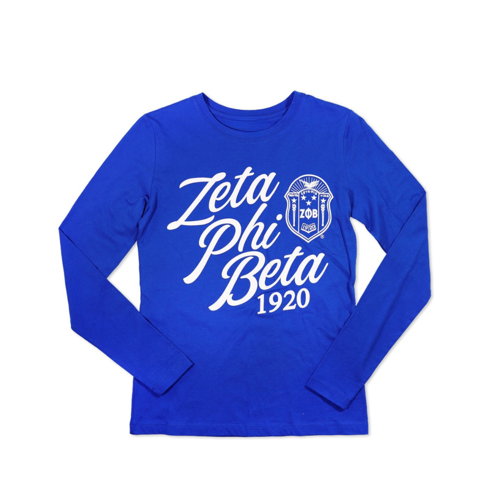 Zeta Phi Beta 1920 Script Logo T-shirt à manches longues bleu royal coton broderie vie grecque vêtements collège sororité porter
