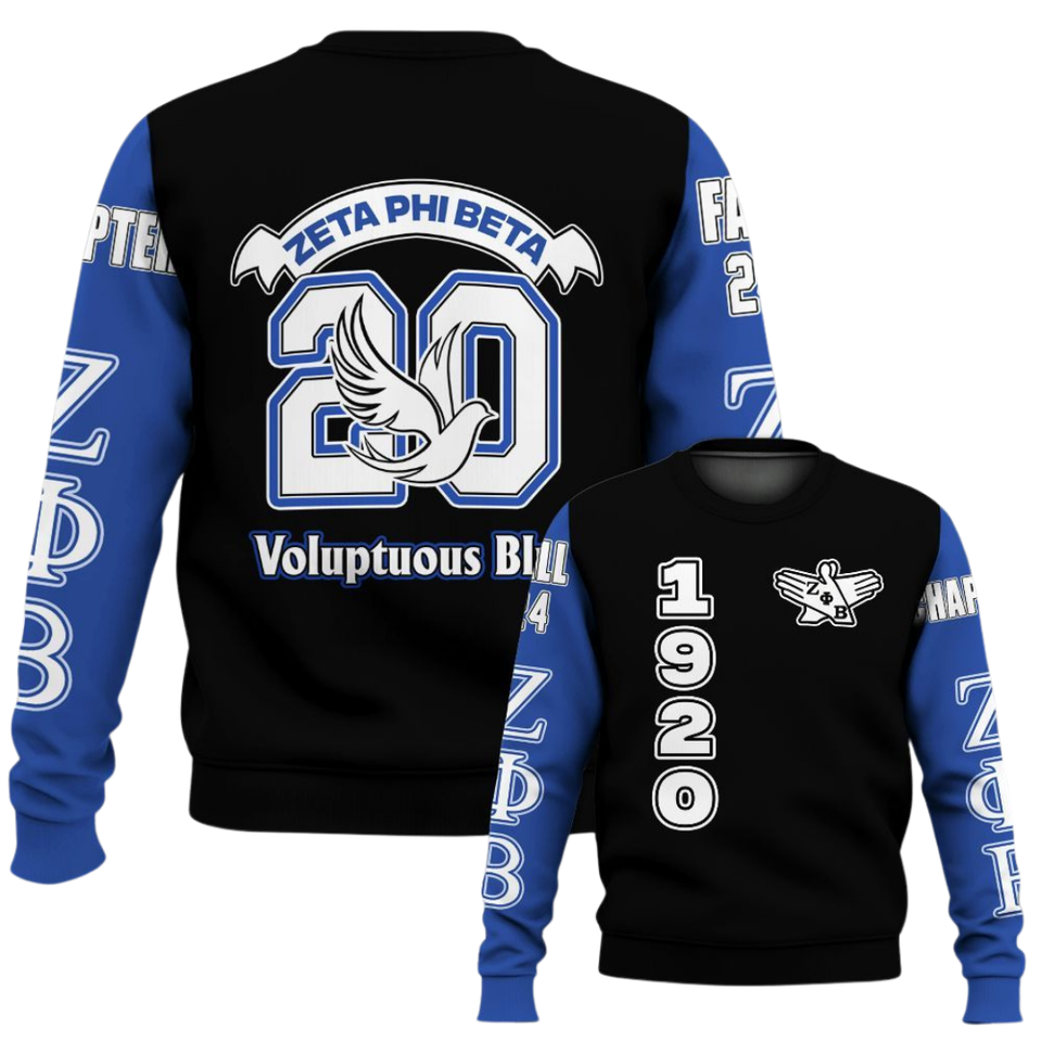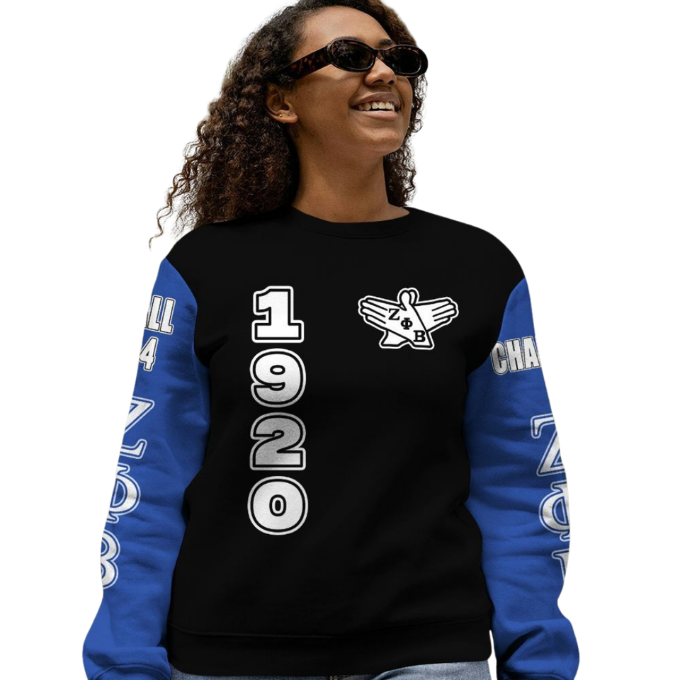 Zeta Phi Beta 1920 Sorority Crewneck Sweatshirt Women Blue Greek Letter Embroidered