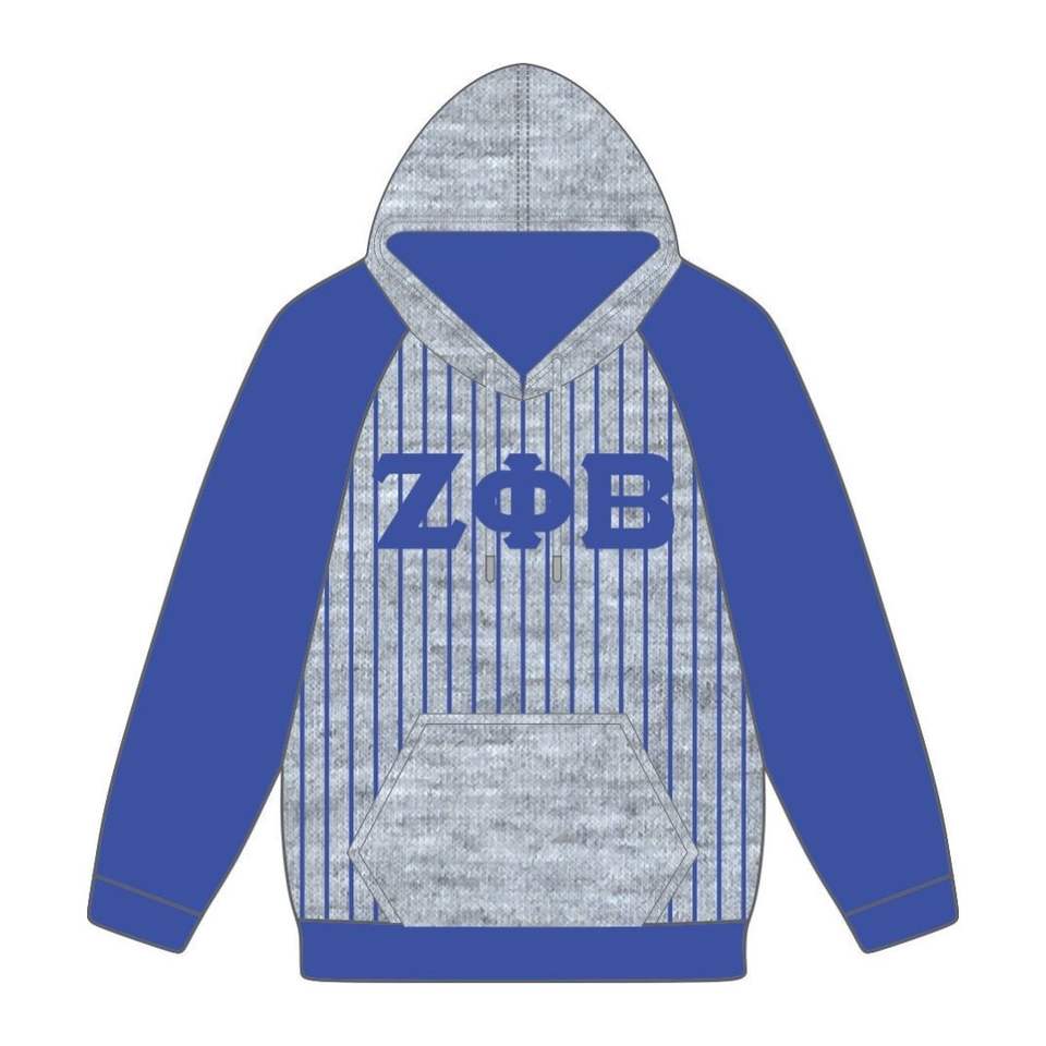 Zeta Phi Beta Gris Corps Bleu Raglan Pinstripes Pull À Capuche Grec Sororité Vêtements Personnalisé Divine Neuf HBCU Vêtements