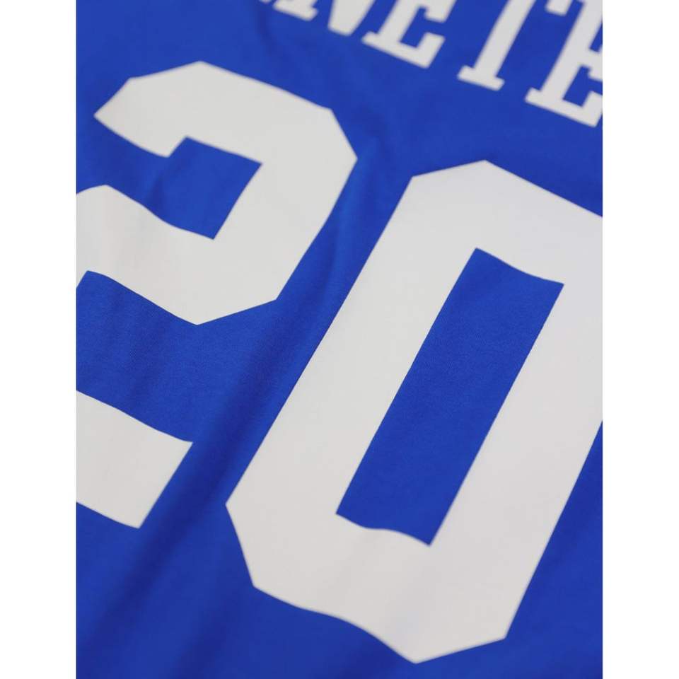 Zeta Phi Beta Oversized Chenille Football Jersey Tee Royal Blue 100% Polyester Embroidered Shield V Neck Double Striped