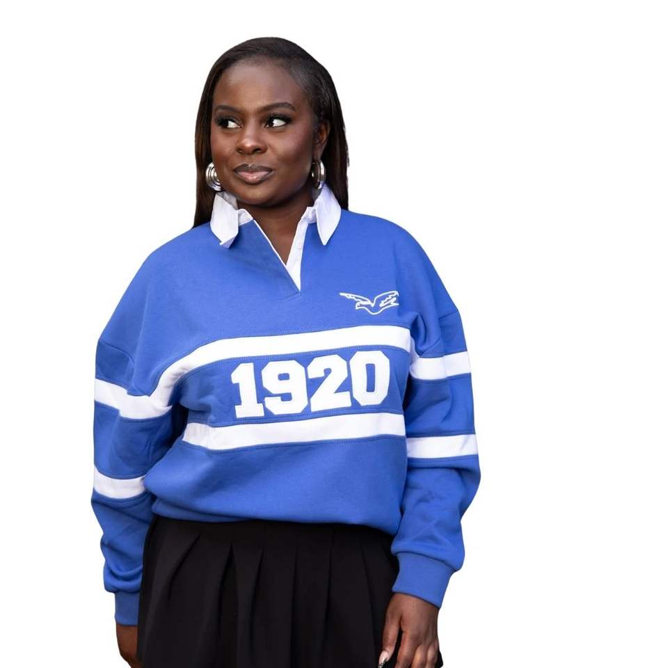 Pull-over Zeta Phi Beta Rugby pour femme, avec lettres grecques 1920, appliqué brodé, coupe oversize, style streetwear décontracté