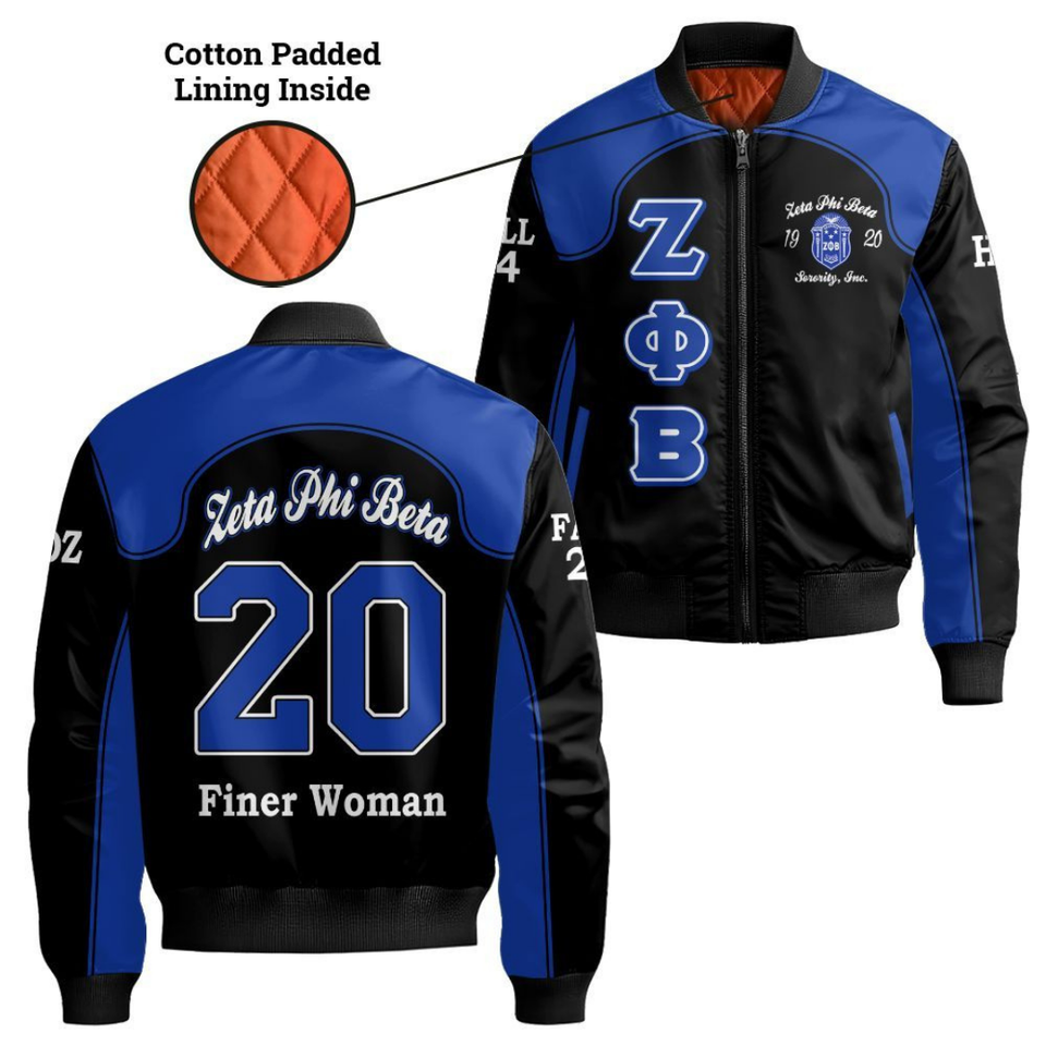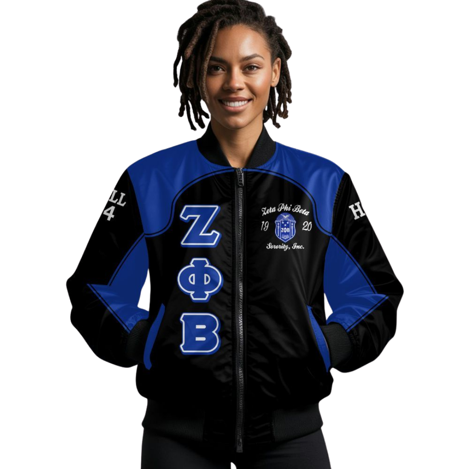 Zeta Phi Beta Satin Jacket Womens 1920 Blue White ZPB Sorority Shield Embroidery Premium Greek Apparel Quality Varsity Wear