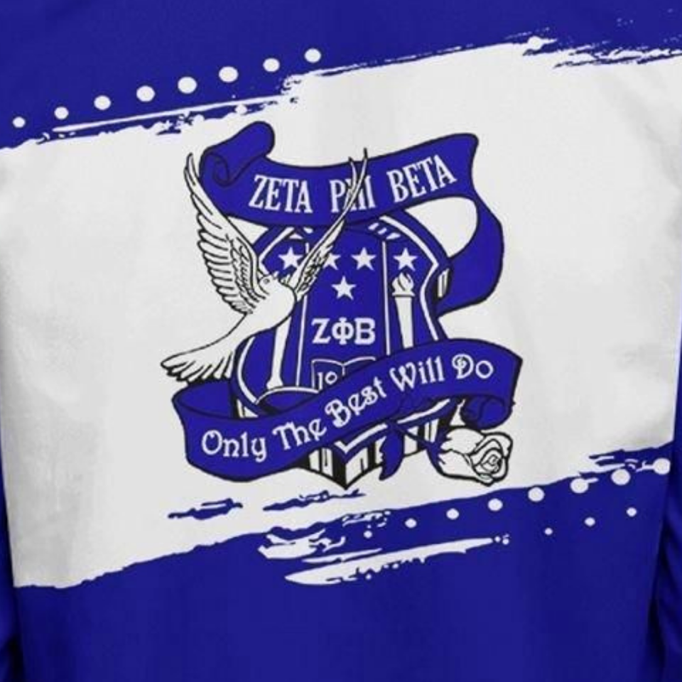 Zeta Phi Beta Womens Satin Jacket Greek Apparel ZPB Blue White Sorority 1920 Shield Embroidery Premium Varsity Look