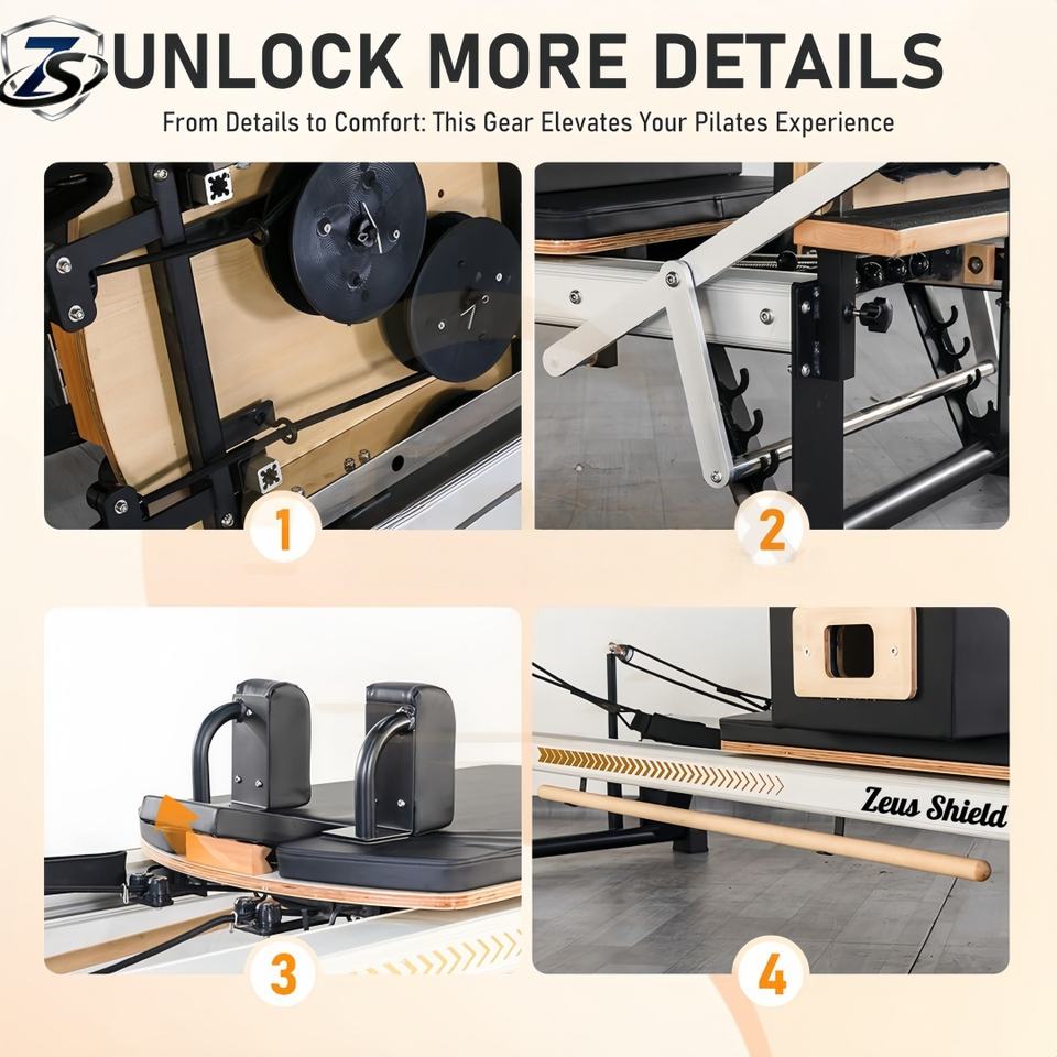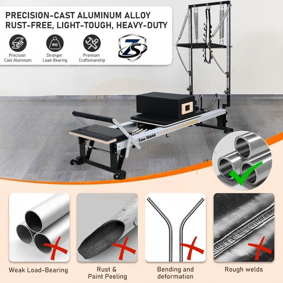 Zeus Shield Pilates Reformer Half Trapeze Full Slide Track Réglable en Alliage d'Aluminium Origine Henan pour Pilates à Domicile et Bien-être Corporel