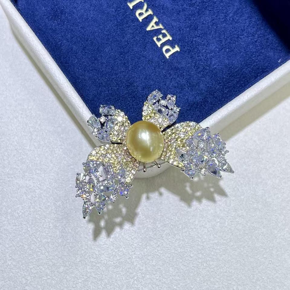 Broche papillon féerique en micro-zircon de qualité 5A Zhenyun, incrustée de perles d'eau douce naturelles, fleur de poitrine, tendance
