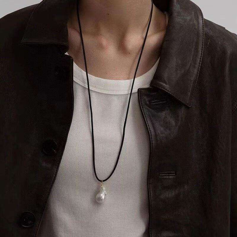 Collier en cuir véritable de forme baroque Zhizhen avec perles, style vintage simple, avec longue couche supérieure ajustable pour pull
