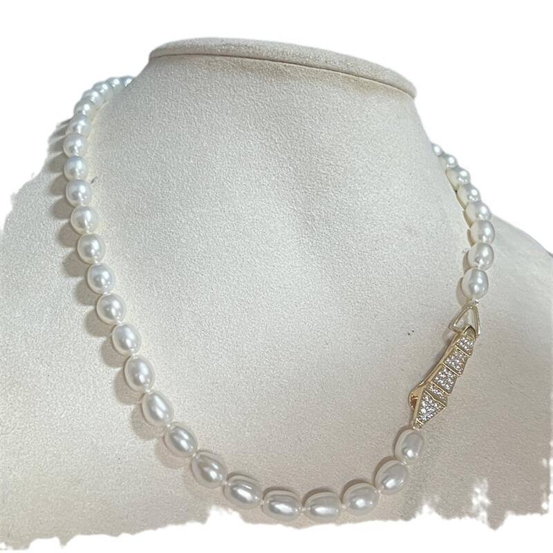 Zhizhen's Luxury Brand Design Newly-Divined Snake Bone Buckle Freshwater Pearl Chubby Rice-Shape Necklace Simple Fashionable