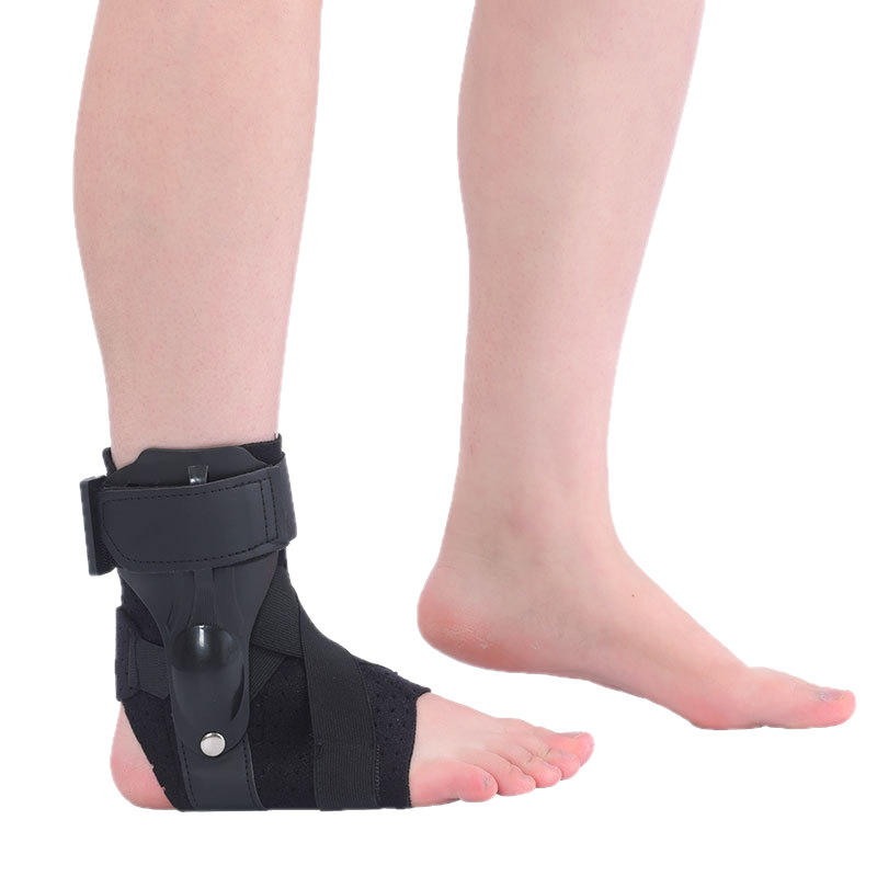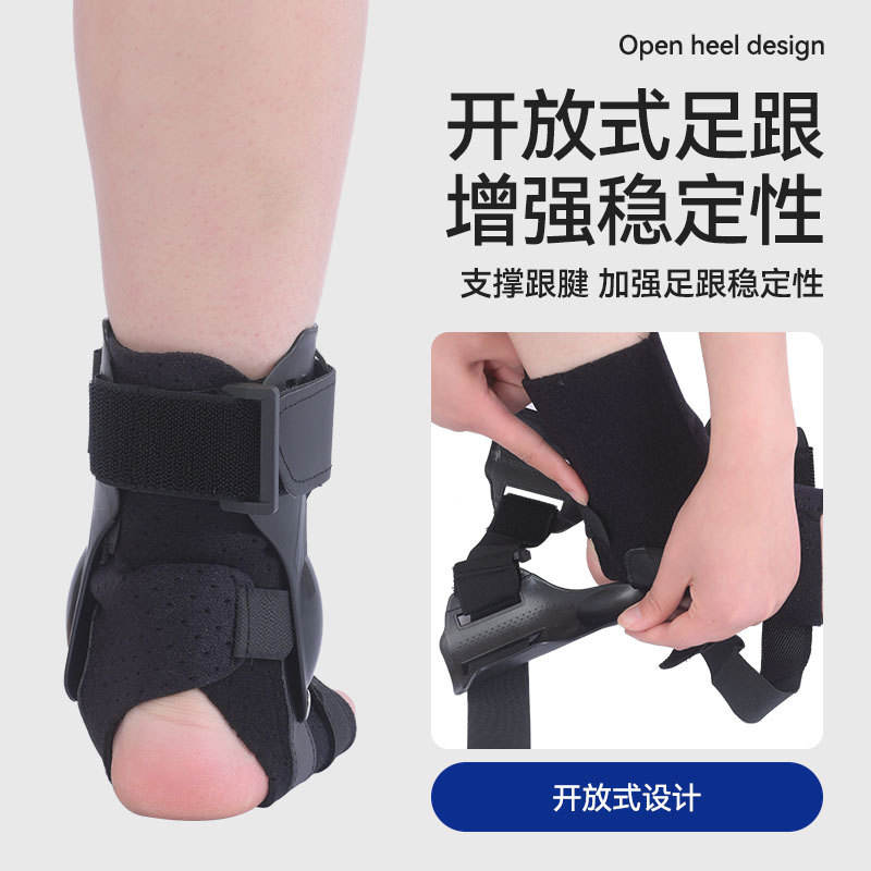 Black hard-shell ankle brace; gray hard-shell ankle brace.color