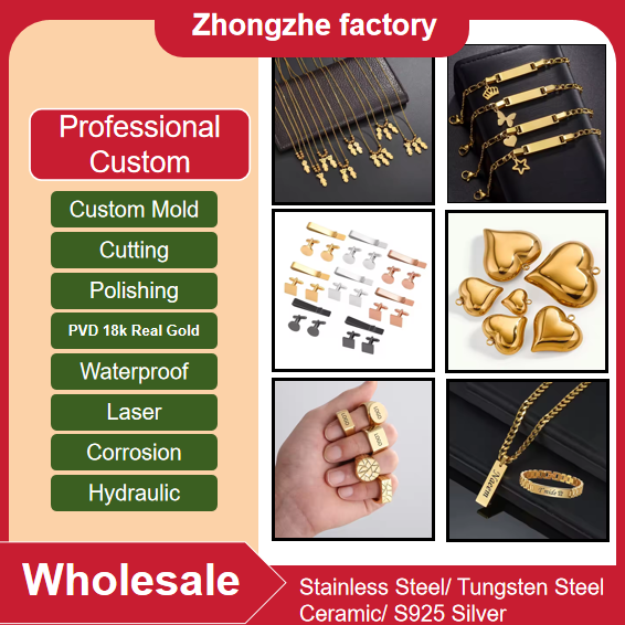 Bracelet en acier inoxydable personnalisé rectangulaire de Zhongzhe Jewelry, peut être gravé au laser, logo DIY, cadeaux de Noël, bracelet pour couple