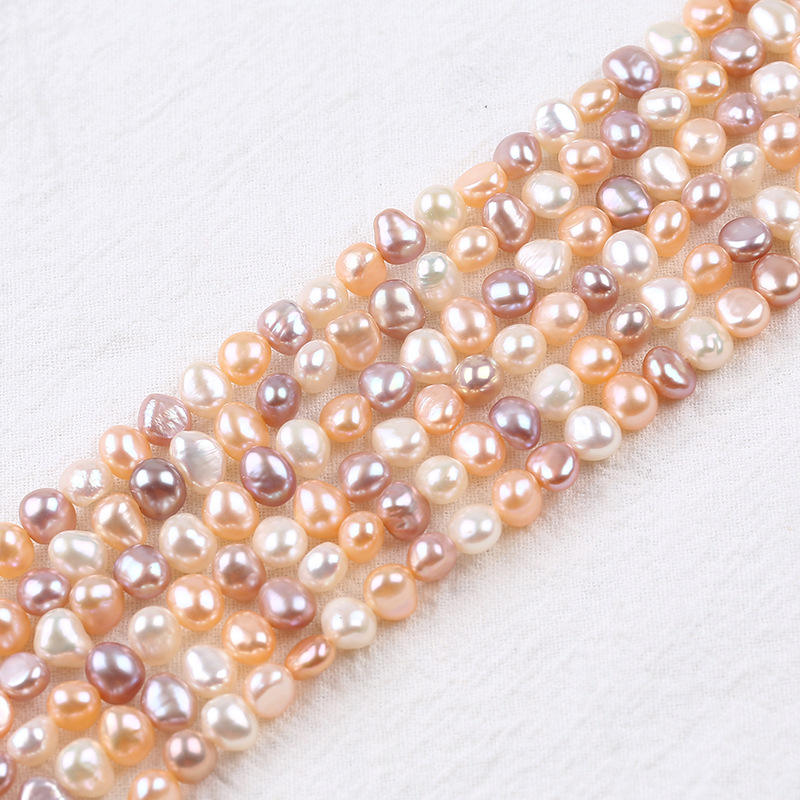 Zhuji 5-6mm Double-Sided Glossy Baroque Natural Freshwater Loose Pearls Side Hole Bead String for DIY Accessory Material