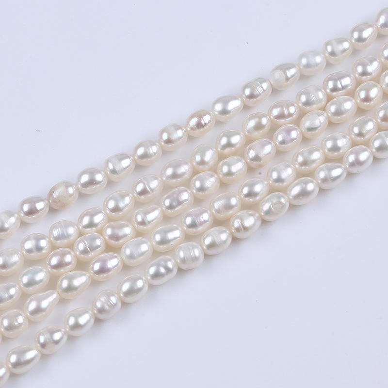 Perles d'eau douce de Zhuji, forme de riz, trou droit, 5-6 mm, couleur perle, perles en vrac pour collier et bracelet DIY, perles de riz en gros