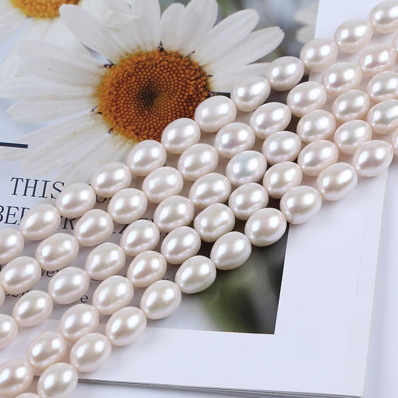 Perles d'eau douce de Zhuji, forme de riz, 9-10 mm, blanches, couleur rose naturelle, perles en vrac pour bricolage, produit semi-fini, vente en gros