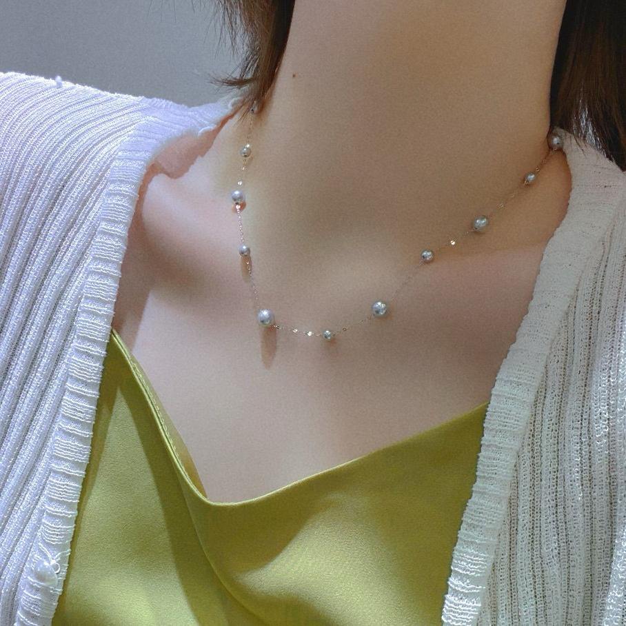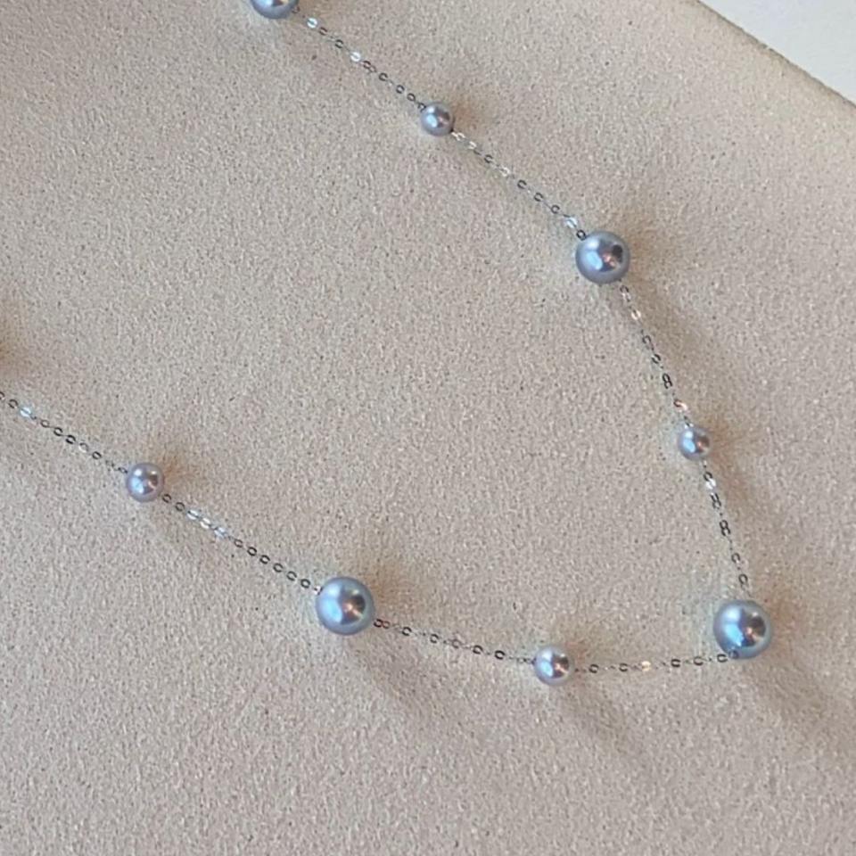 Zhuji 925 Silver Necklace 7-8mm Aurora AK Pearl Starry Sky Smile Chain Natural 925 Silver 7-8mm Aurora AK Pearl Starry Sky Smile