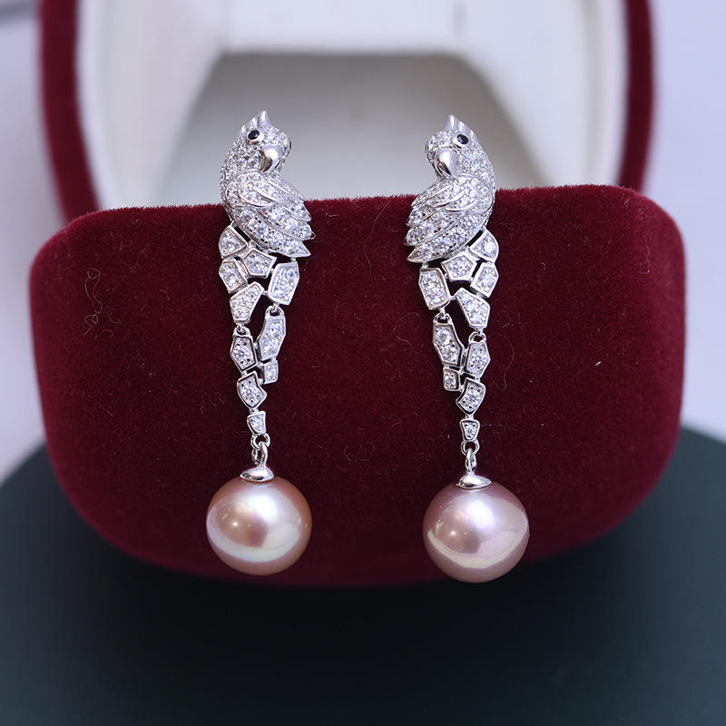 Zhuji Danshui 10-11mm White Round Fine Pearl Earrings S925 Silver Petal Dangle Bright Light Elegant Design