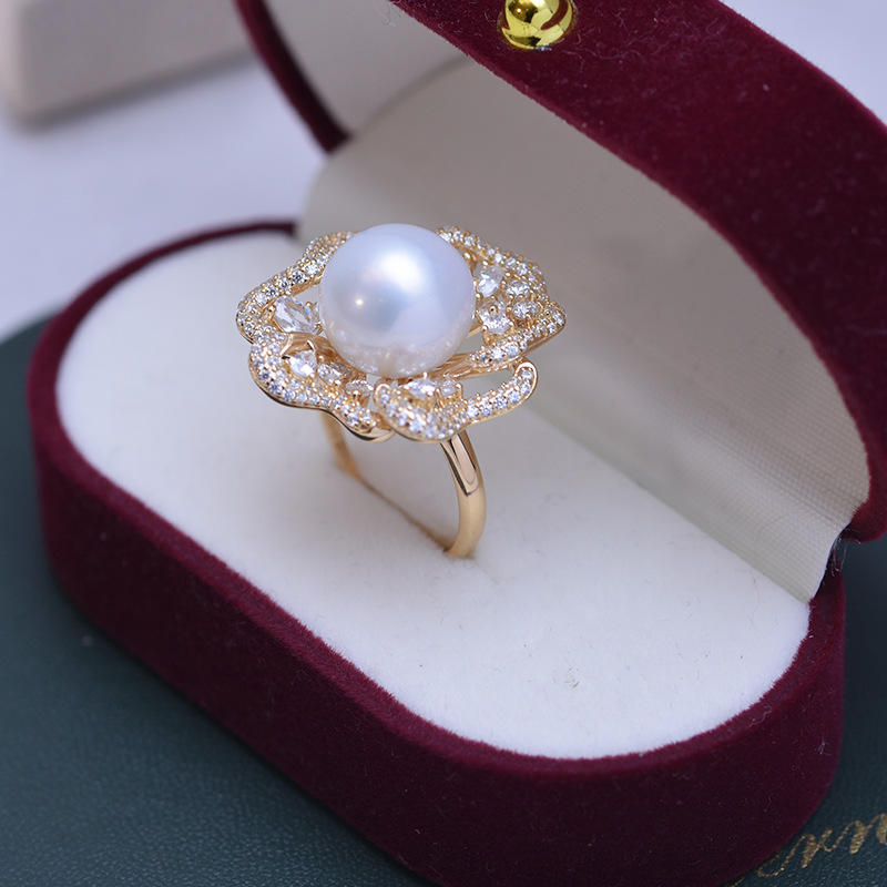 Zhuji Danshui Handmade S925 Silver Full Set 11-12mm White Round Strong Light Pearl Ring Fine Flaws Wholesale Jewelry