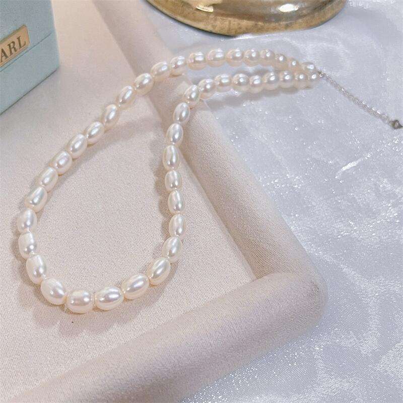 Collier de perles de riz en argent pur Wenchi Zhuji Danshui, style identique à celui de Zhao Lusi, polyvalent, élégant et raffiné, Chine